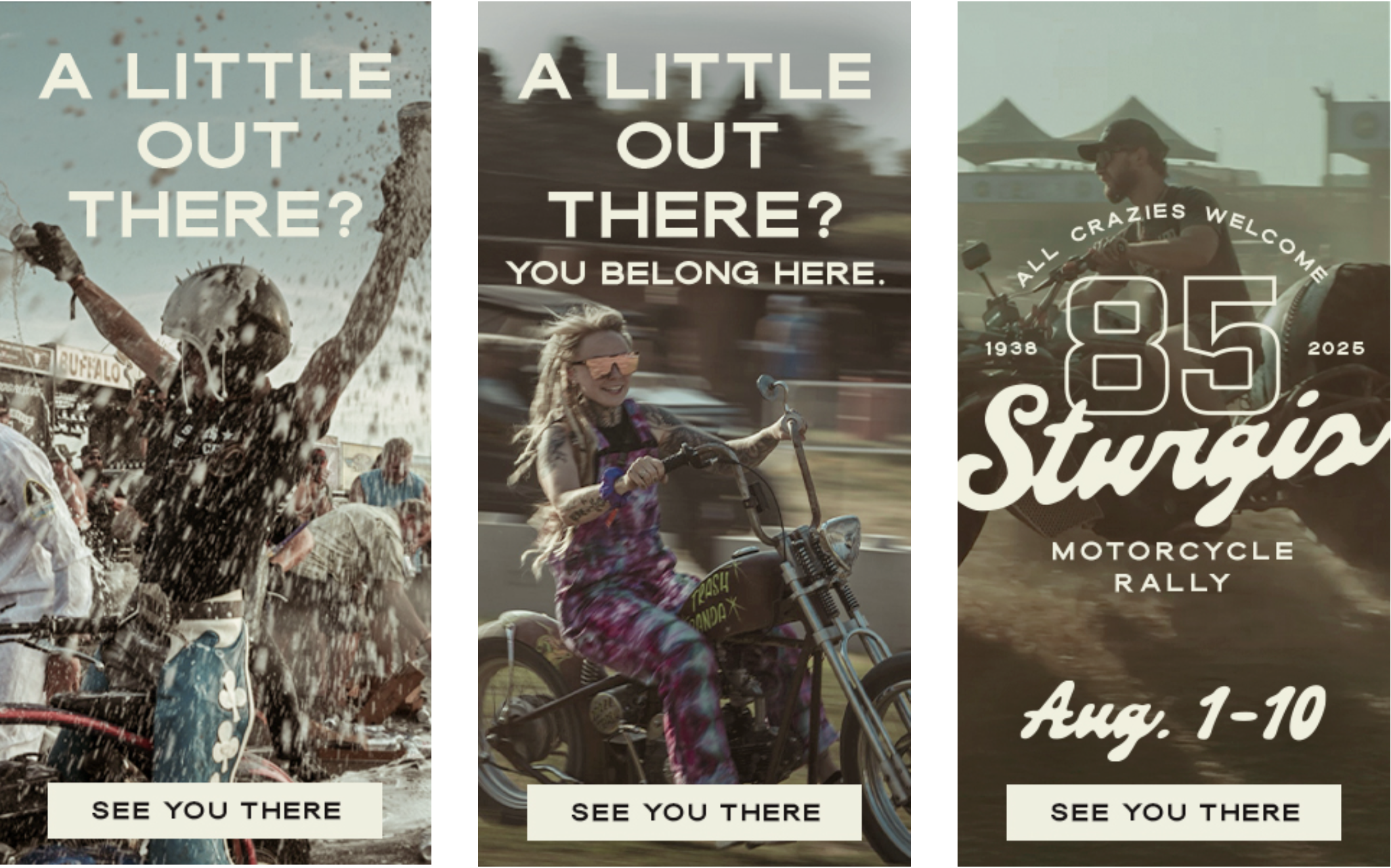The world’s wildest party was at a crossroads. On the cusp of its 85th anniversary, the Sturgis Motorcycle Rally faced both an aging audience and an ill-fitting stereotype: that it’s only welcome to middle-aged white guys on ear-splitting Harleys. We tore down that outdated image with an invitation as subtle as a bike with a broken muffler. All Types of Crazy Welcome was a call to a younger, more diverse group of misfits to join the party. All while staying true to the wild, untamed spirit of Sturgis.